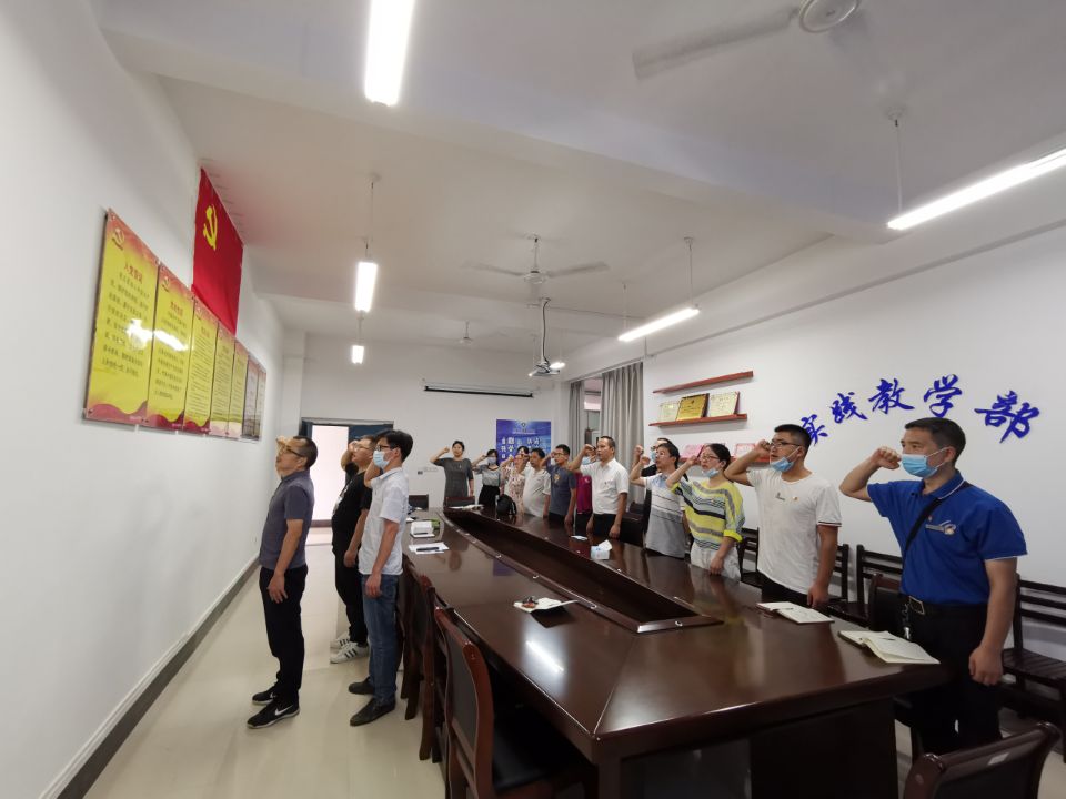 7月1日,为庆祝中国共产党成立99周年,进一步推动学习贯彻习近平新时代中国特色社会主义思想和党的十九大精神,回顾党的光辉历程,教育引导广大党员继承和发扬党的光荣传统和优良作风,实践教学部直属党支部开展“庆祝建党99周年”主题党日活动。实践教学部全体党员参加了此次活动。