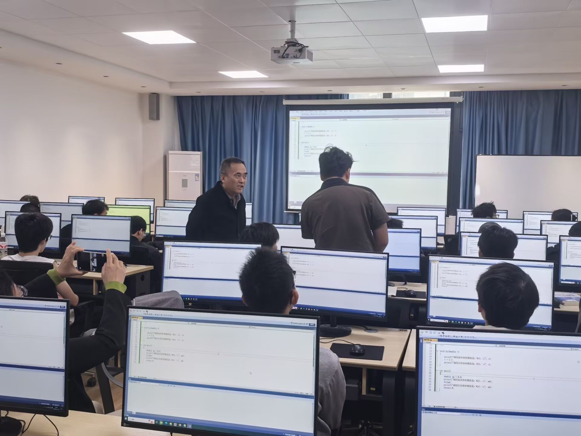 在秦向东老师的《C语言程序设计》课堂上,抽象的编程概念化为了生动的逻辑游戏。秦老师从一个趣味性的实际问题入手,层层递进,引导学生逐步拆解问题、构建算法,并最终用C语编程解决问题。课堂气氛活跃,师生互动频繁,充分展现了程序设计课程思维体操的特色,有效培养了学生的计算思维和创新能力。
